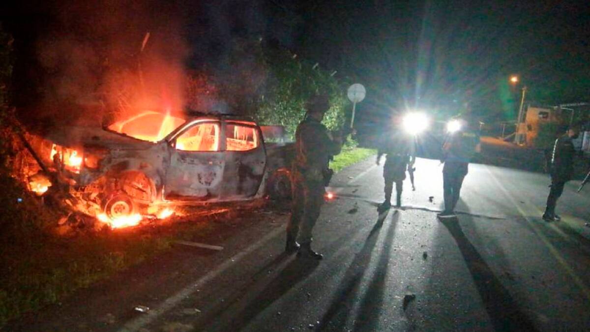 Los desconocidos dispararon en repetidas oportunidades a los ocupantes del vehículo. El hecho dejó a un policía muerto, el cual habría sido incinerado, otro uniformado herido y uno más desaparecido, juntos a dos civiles.