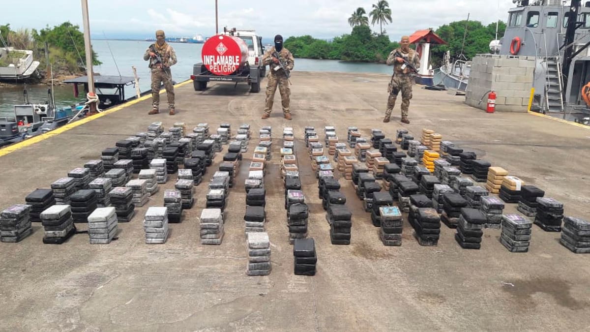 El cargamento de droga, no identificada así como tampoco su peso total, estaba almacenado en 43 bultos dentro de una lancha rápida tripulada por 4 colombianos y un panameño, que fue interceptada por las unidades aeronavales.