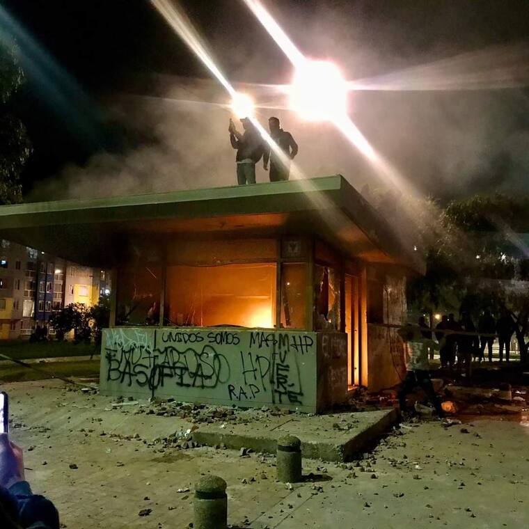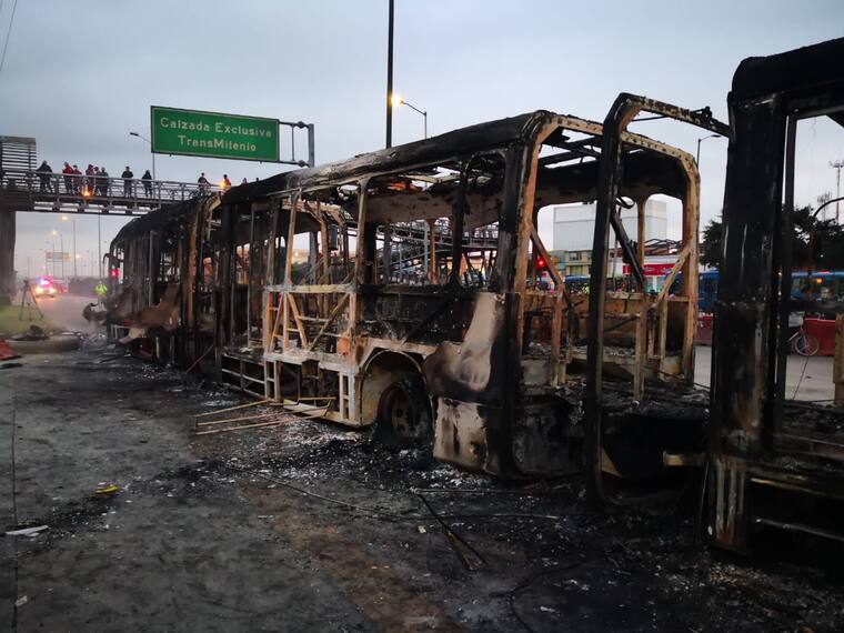 77 vehículos afectados, 25 de ellos, buses de Transmilenio, así como patrullas. 70 personas han sido capturadas.