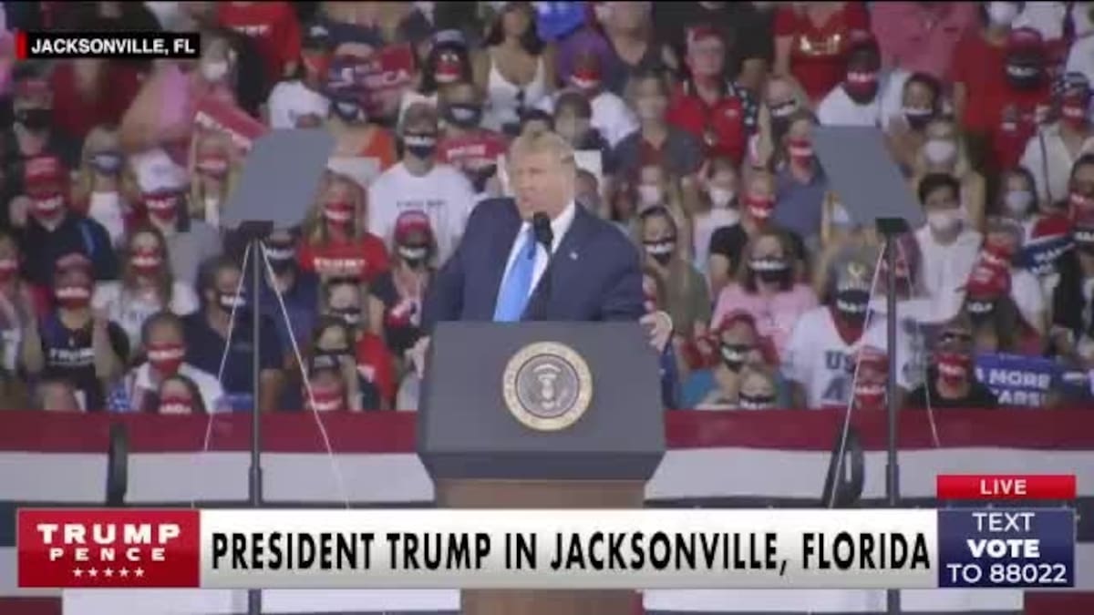 Desde Jacksonville, Florida, el presidente Donald Trump aseguró que: 'La última administración también negoció el terrible trato Obama-Biden-Santos con los carteles de la droga colombianos'.
