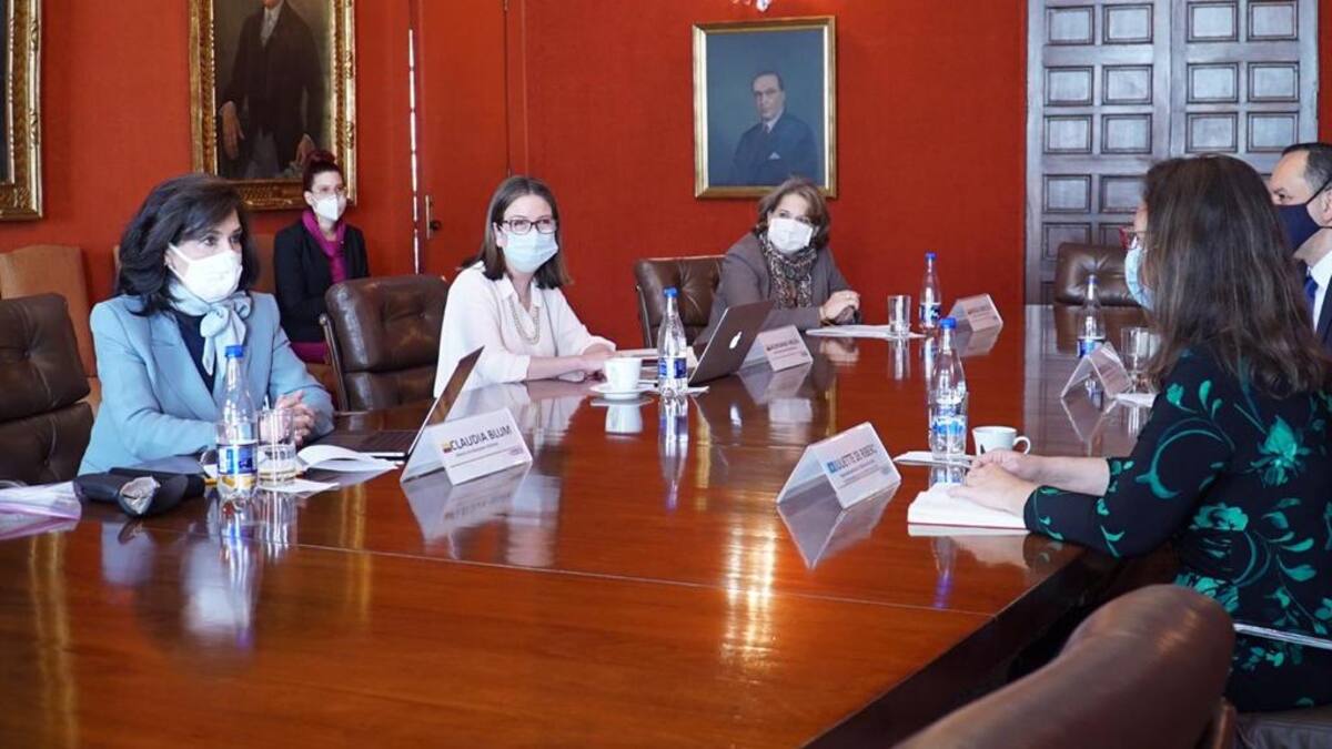 La ministra de Relaciones Exteriores, Claudia Blum, reiteró la disposición del Gobierno nacional para trabajar coordinadamente con la Oficina de la Alta Comisionada de las Naciones Unidas para los DD.HH. en el país, tras reunirse este lunes con Juliette de Ribero, la nueva representante de la ONU.
