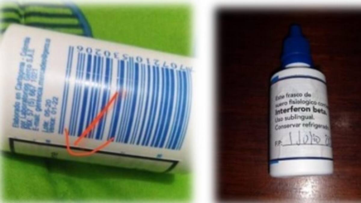 El Invima advierte que estarían quitando la etiqueta del Rhifisol para poner una que diga Interferon ß -1b, como se muestra en las imágenes.