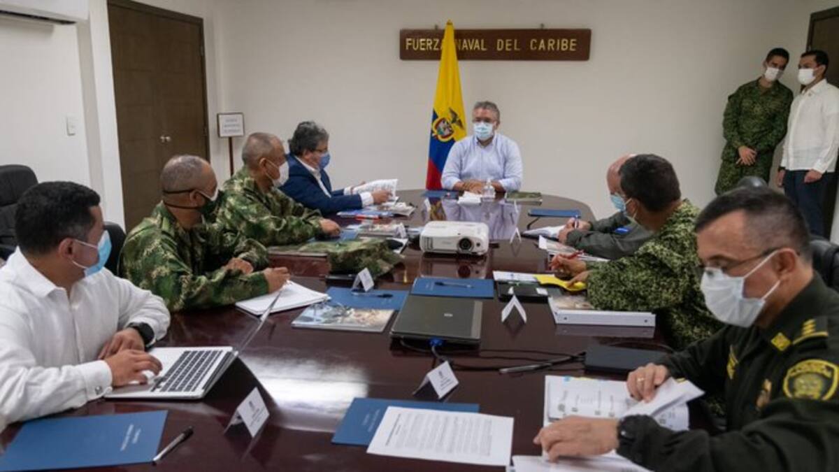 Desde Cartagena, el presidente de la República, Iván Duque, lideró ayer un Consejo de Seguridad en el que participaron la cúpula militar y policial.