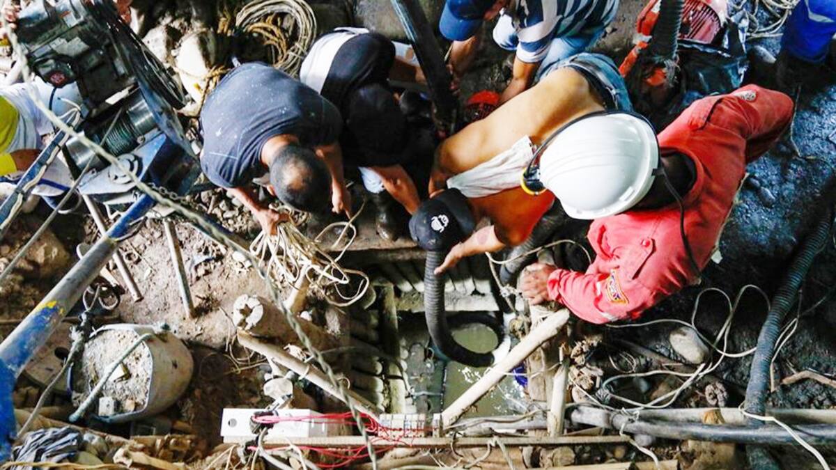 'Se estuvo trabajando con motobombas durante toda la noche para extraer el agua contenida. En el sitio están cinco bomberos de Neira, cuatro de Irra, cuatro de (el municipio de) Quinchía, cinco de (la localidad de) Ríosucio, 13 socorristas de la ANM, un paramédico y siete miembros de la Defensa Civil', detalló la Secretaría de Medio Ambiente de Caldas.