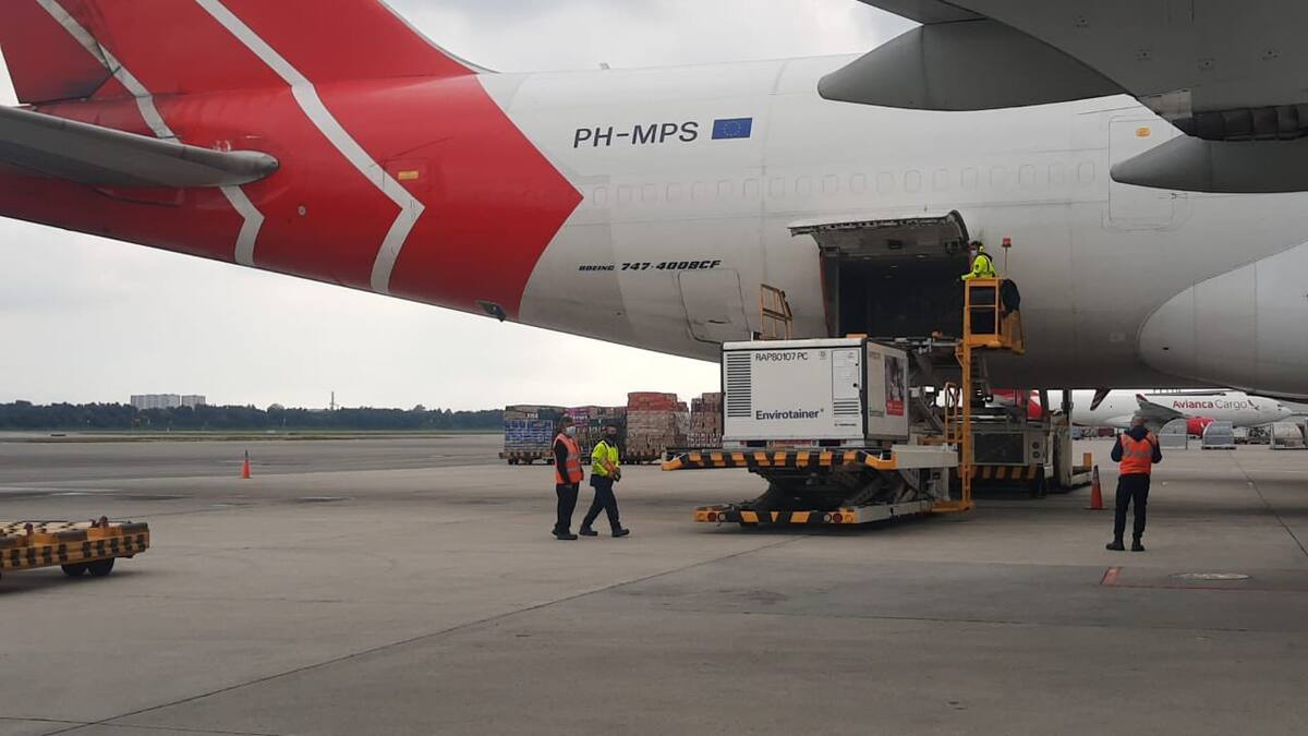 Con la llegada de estas dosis, Colombia suma en total 9’077.084 vacunas. Los sueros arribaron a las 4:57 de la tarde en el vuelo MP6161, de la aerolínea de carga neerlandesa MartinAir, procedente de la ciudad de Miami.