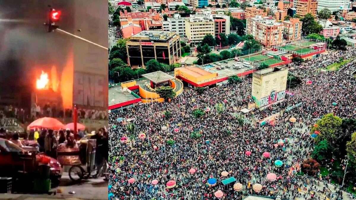 La Secretaría de Gobierno de la capital informó que las llamas cubrieron la estatua del libertador Simón Bolívar, por lo que el Escuadrón Móvil Antidisturbios (Esmad) de la Policía tuvo que intervenir y retomar el control del sitio para evitar mayores afectaciones en la vía pública.