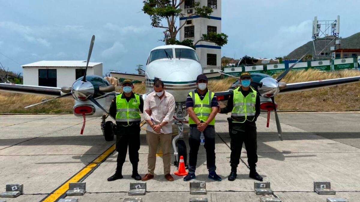 La droga era transportada en una avioneta tipo Beechcraf, modelo C-90 de matrícula N722KR, que partió desde el aeropuerto privado de Guaymaral, en inmediaciones de Bogotá, hacia la isla.