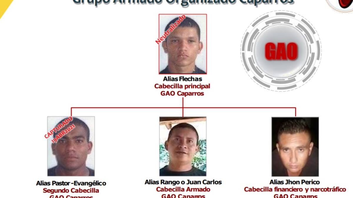 De acuerdo con las autoridades, ‘Flechas’ tenía una amplia trayectoria criminal de más de 18 años, y había pertenecido al Bloque Mineros de las extintas AUC. Su accionar delincuencial con ‘los Caparros’ tenía afectación en la región del Bajo Cauca Antioqueño y el sur de Córdoba.