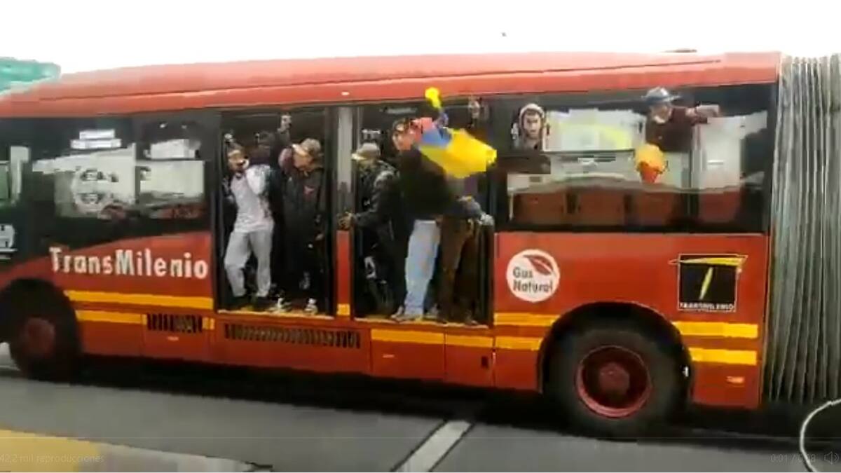 Videos circularon en las redes sociales, donde se podía evidenciar cómo el articulado pasaba frente a la estación con varias personas colgando de ventanas y puertas ondeando banderas y lanzando arengas y gases.