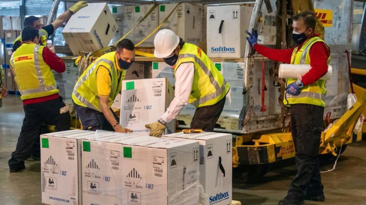 El primer lote de vacunas en llegar corresponde a 909.600 dosis del laboratorio AstraZeneca.