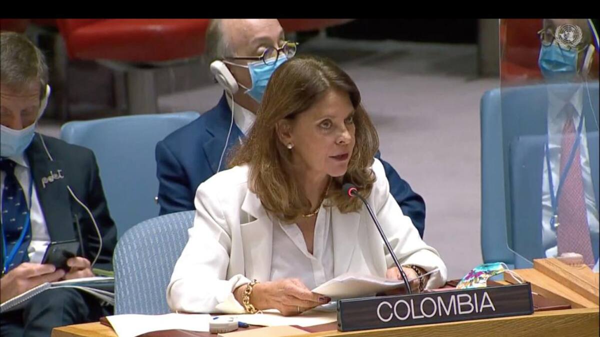 La vicepresidenta y canciller Marta Lucía Ramírez intervino este martes ante el Consejo de Seguridad de la ONU en Nueva York, en medio de una sesión citada sobre Colombia, defendiendo la labor del Gobierno en torno a la implementación de la paz y asegurando que la violencia en las protestas fue perpetrada por 'minorías infiltradas' y que hubo 'una extraña coincidencia con el proceso electoral que se avecina'.