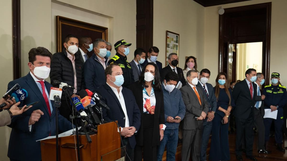 El ministro de Defensa, Diego Molano, en compañía del ministro del Interior, Daniel Palacios, el director de la Policía Nacional, el general Jorge Luis Vargas y los coautores de los dos proyectos radicaron con un mensaje de urgencia los proyectos de ley que buscan transformar y reformar la institución armada.