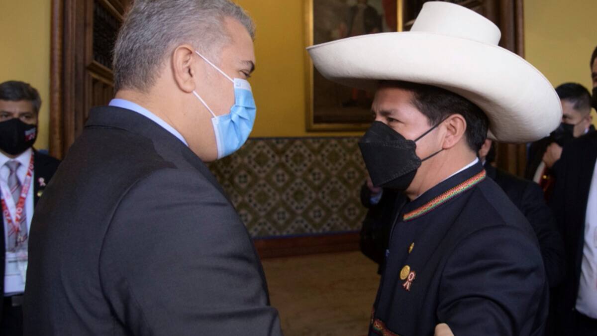 El presidente de Colombia sostuvo un encuentro con Castillo en la sede de la Cancillería, antes de su juramentación al cargo, al igual que otros invitados como el mandatario de Chile, Sebastián Piñera.