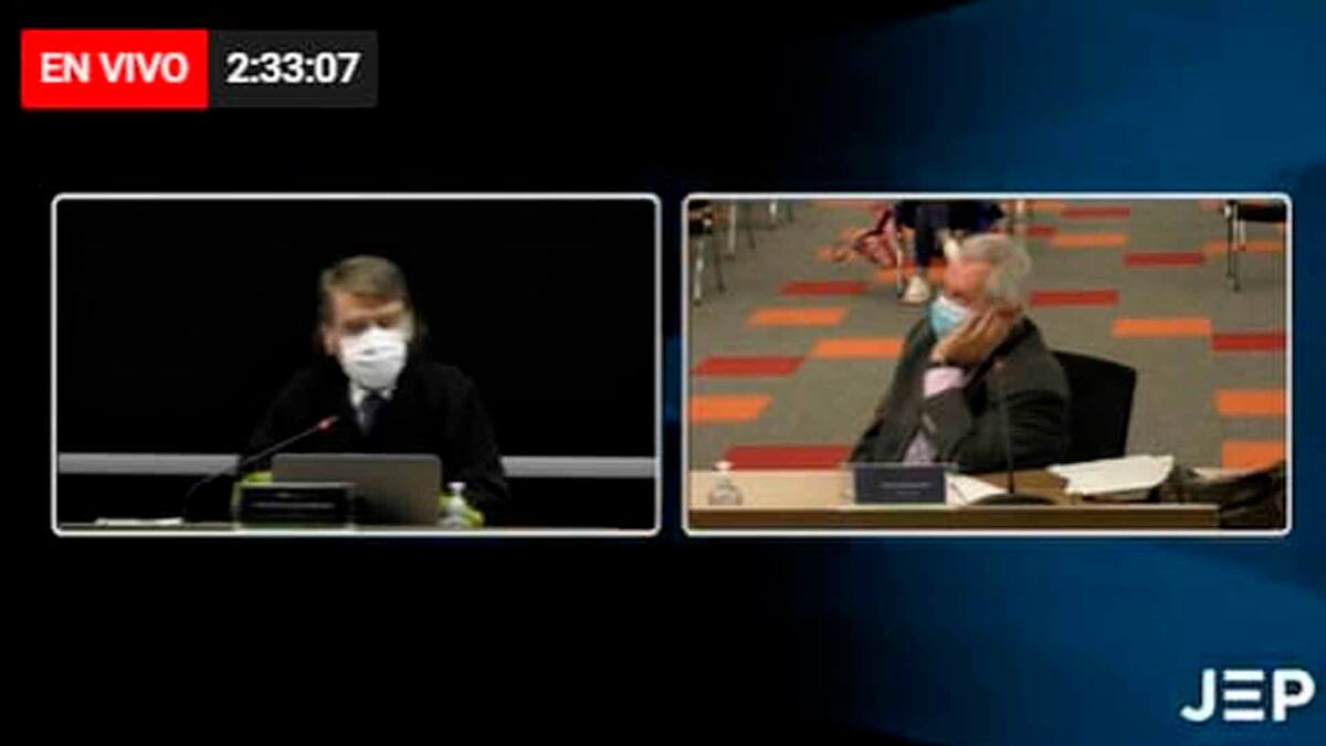 'Por quebrantos de salud del general (r) Rito Alejo del Río, el magistrado Gustavo Salazar suspende la diligencia hasta nuevo aviso. Ante la situación, el personal de la enfermería de la JEP atendió al general Del Río y procedió a llamar una ambulancia, que lo trasladó hasta un centro asistencial', informó el tribunal de paz en su cuenta de Twitter.