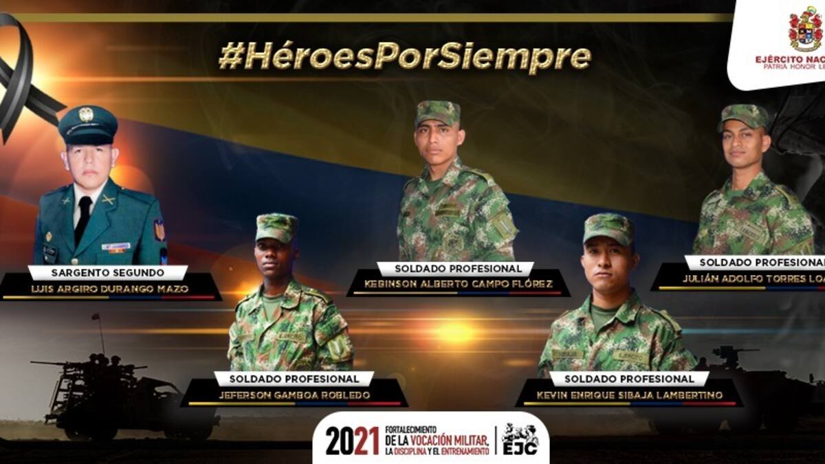 La identidad de los militares asesinados este sábado en Arauquita, Arauca, a manos del Eln, fue revelada por el Ejército Nacional