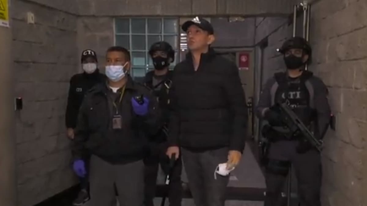 Posteriormente, en el mismo material se aprecia cuando Tapia es colocado a disposición de los guardas del Inpec quienes lo llevan al centro penitenciario.