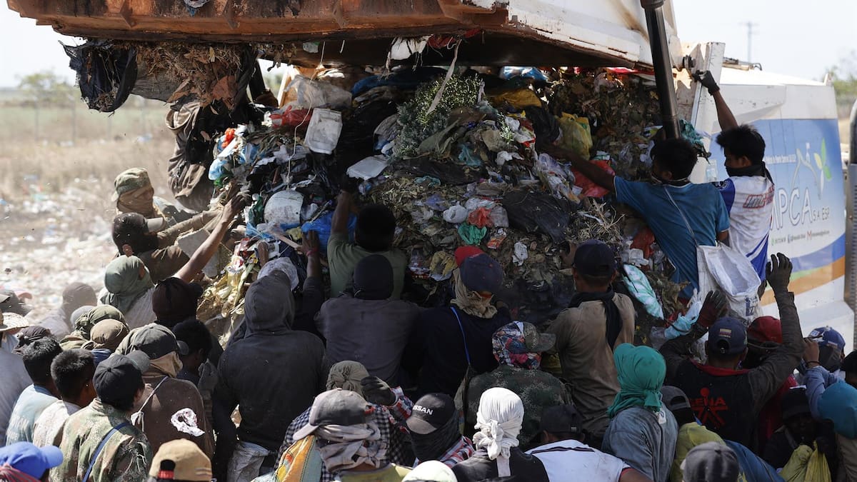 Una recopilación de imágenes muestran a indígenas en Puerto Carreño escarbando entre la basura.