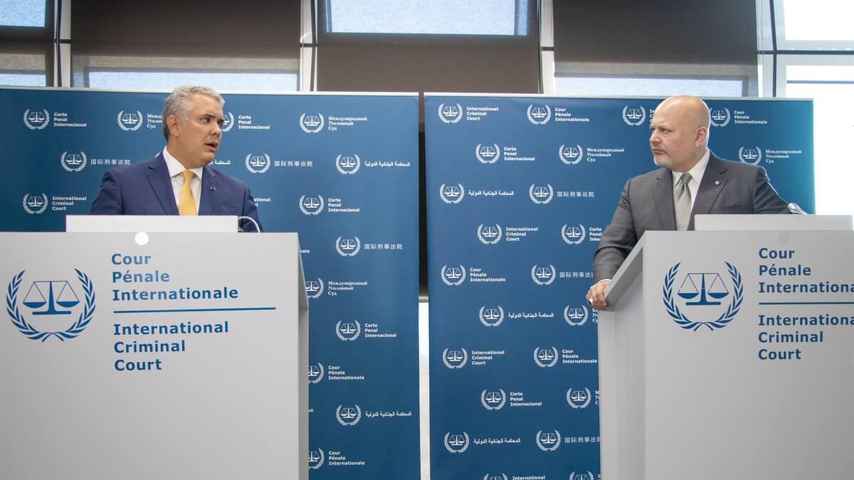 Duque dijo estas palabras acompañado del fiscal jefe de la CPI, Karim Khan, que en una declaración sin preguntas de la prensa indicó que Colombia 'es un modelo en muchos sentidos', aunque advirtió de que 'aún hay problemas y dificultades' en la aplicación de la justicia en el país latinoamericano.