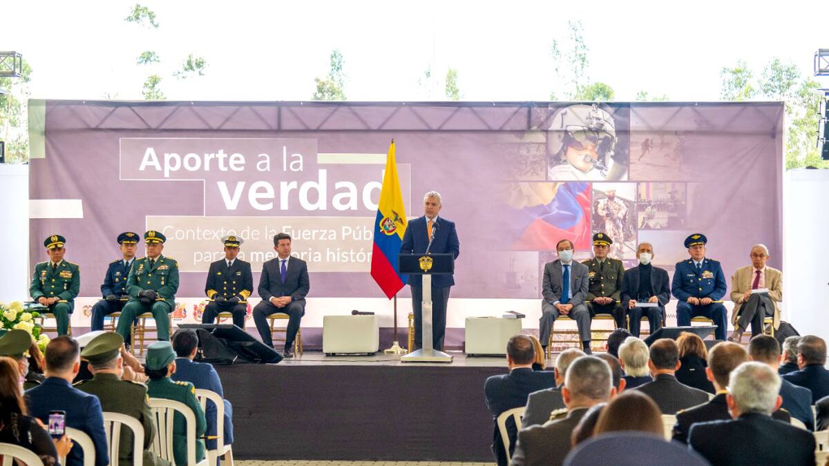 Duque resaltó en este sentido que a lo largo de la historia de Colombia ha habido 16 esfuerzos de paz 'y en todos los soldados y policías han estado ahí presentes, leales para apoyar al país'.