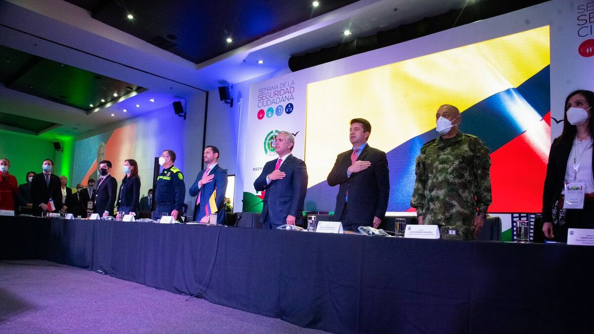 El presidente Iván Duque invitó a las policías de los países de América Latina y el Caribe a fortalecer la cooperación para afrontar los desafíos en seguridad ciudadana, durante la apertura de la XII Semana de la Seguridad Ciudadana 2022, ‘Transformaciones Policiales en América Latina y el Caribe’, organizado por el Banco Interamericano de Desarrollo (BID).