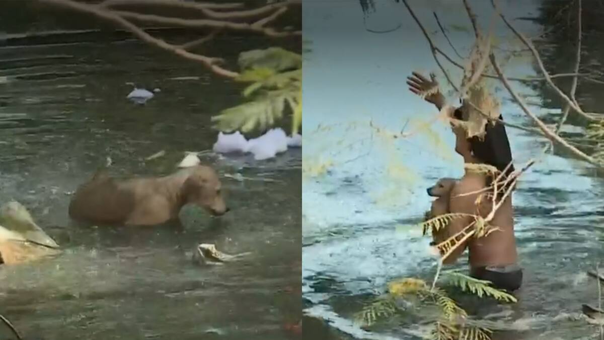 Por suerte, un hombre se adentró a las aguas por encima los olores y las posibles enfermedades que podría contraer al sumergirse en aguas contaminadas.