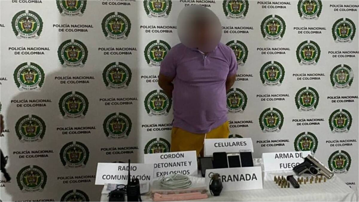'En el operativo fue incautada un arma de fuego, explosivos y una granada. Las informaciones recaudadas lo vinculan con otras acciones criminales en Urabá y Santafé de Antioquia', precisó la Policía.