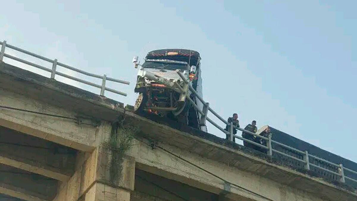 Al parecer, sospechosos habrían intentado atracar a un conductor de un camión que circulaba por la estructura y el vehículo perdió el control.