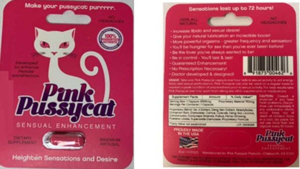 'Este ingrediente no declarado puede interactuar con los nitratos que se encuentran en algunos medicamentos recetados, como la nitroglicerina, y reducir la presión arterial a niveles peligrosos. Por consiguiente, la presencia de sildenafil en las cápsulas de Pink Pussycat hace que sea un medicamento no aprobado para el cual no se ha establecido la seguridad y eficacia y, por lo tanto, sujeto a retiro', indicó la entidad en un comunicado.