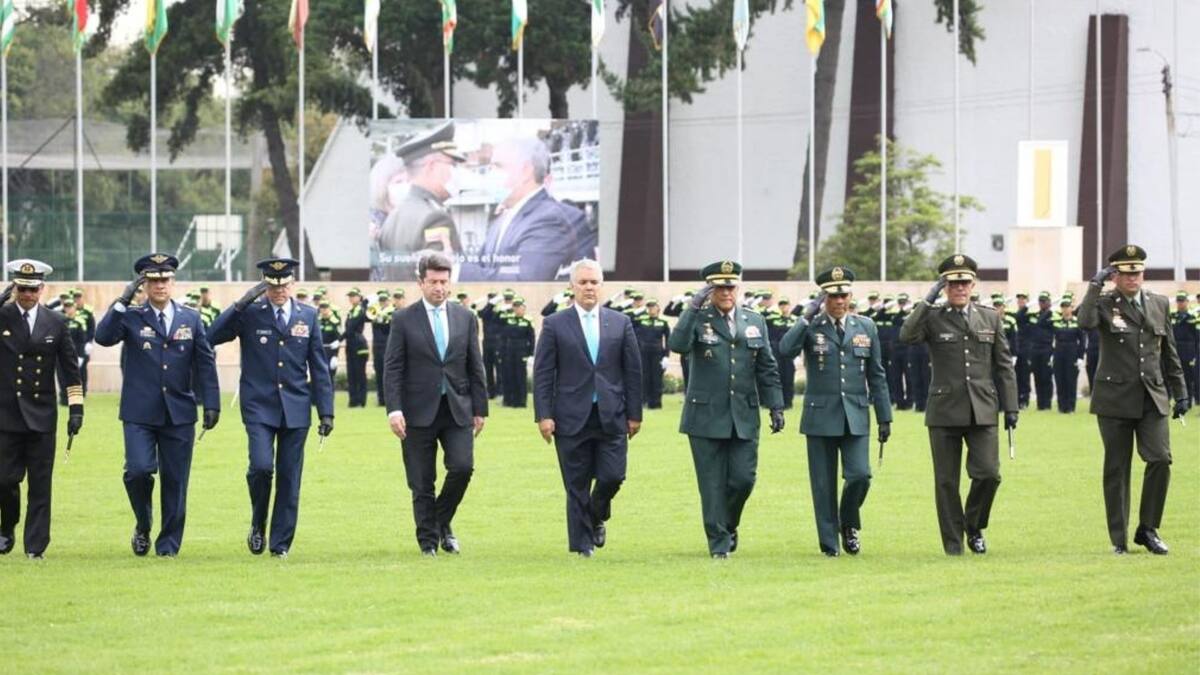 Por su parte, el mandatario, en compañía de la cúpula militar y el director de la Policía, general Jorge Luis Vargas, conmemora el aniversario número 82 de la Escuela de Cadetes de Policía General Francisco de Paula Santander y la graduación del curso 116 de oficiales, promoción Brigadier General José Luis Vargas Villegas.