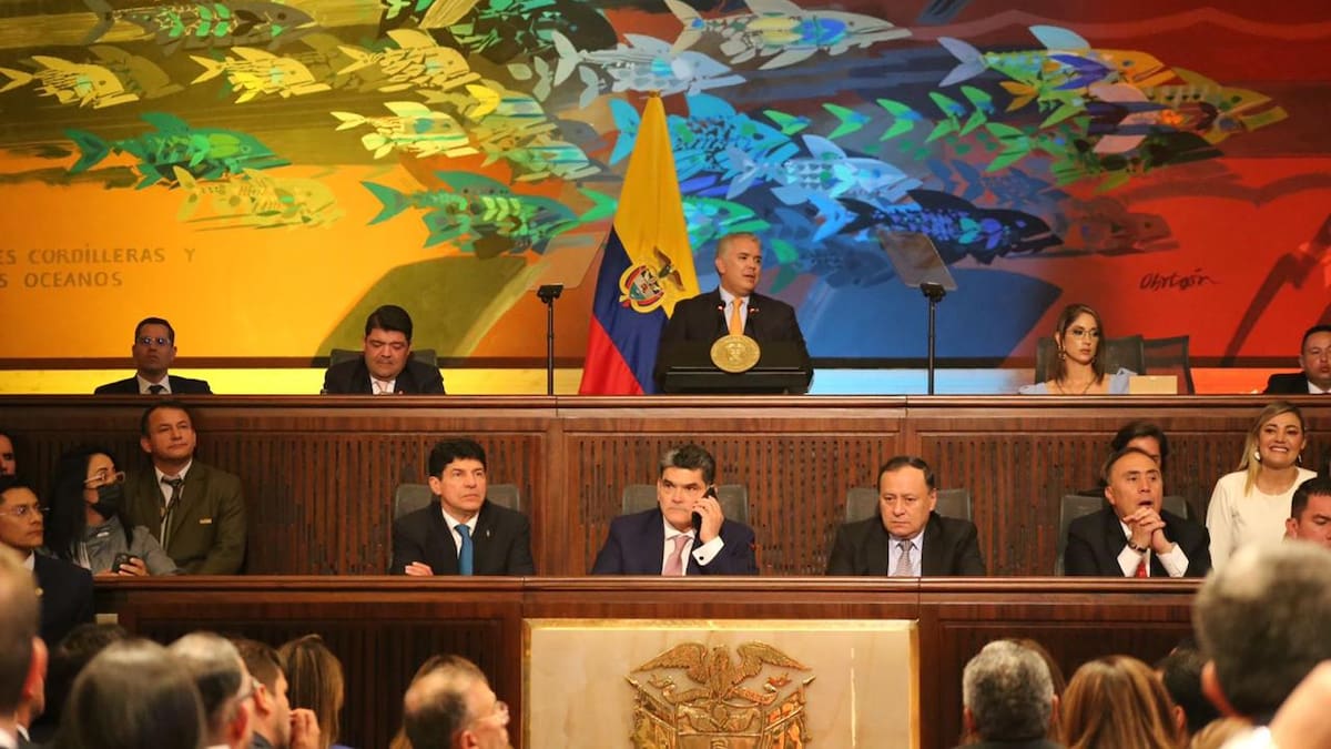 Con el discurso quizá más difícil de sus cuatro años de mandato, por las numerosas reacciones e interrupciones de la fortalecida bancada del gobierno electo –ayer en oposición–, el presidente Iván Duque instaló el nuevo Congreso de la República.