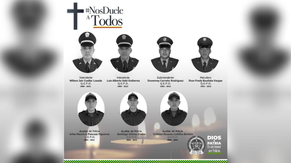 La Fiscalía informó este domingo en un comunicado los avances en la investigación por los siete policías muertos en la emboscada fatal perpetrada con explosivos al parecer por las disidencias de las Farc en el corregimiento de San Luis, en Neiva, Huila.