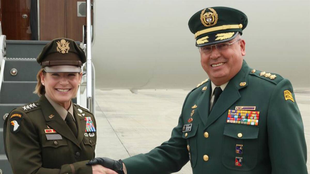 La general fue recibida en la base militar de Catam, anexa al aeropuerto internacional El Dorado, por el comandante de las Fuerzas Militares de Colombia, general Helder Fernan Giraldo Bonilla, detallaron las FF.MM. en un comunicado.