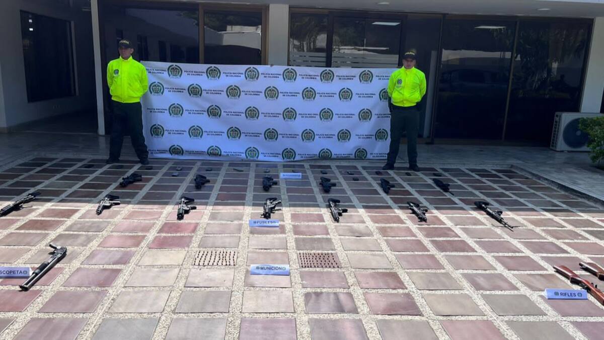 'En zona rural de Santander de Quilichao (Cauca), en coordinación con la Agencia Antidrogas de los Estados Unidos (DEA) y la Fiscalía General de la Nación, se logró la incautación de 14 fusiles, dos rifles, 16 proveedores, munición calibre 30 y una escopeta Mossberg', indicó la Policía.