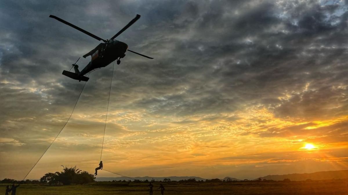En la actualidad 38 uniformados de Colombia, Panamá, Ecuador, Argentina y Estados Unidos se encuentran en su cuarta y última semana de entrenamiento que comprende la adquisición de destrezas combinadas para operar de forma aérea, fluvial y terrestre, en los que el factor sorpresa, la rapidez y la movilidad de los helicópteros, 'brindan la fortaleza para poder afectar de manera contundente las acciones criminales desplegadas por los grupos armados organizados'.