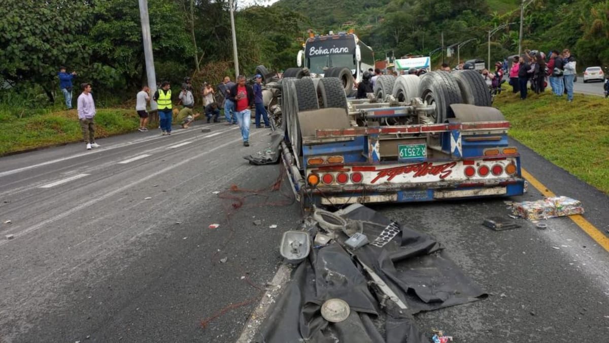 Según indicó la secretaría de Movilidad de Medellín, un tractocamión se quedó sin frenos e impactó a varios vehículos, quedando volcado a un costado de la vía en sentido occidente - oriente.