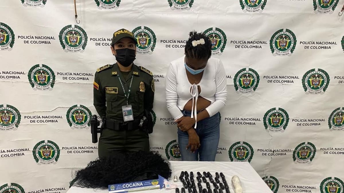 Al ser requerida por las autoridades la mujer, cuya identidad no se suministró, se puso nerviosa y fue llevada a una sala de rayos X en donde se descubrió que llevaba puesta una peluca a la que le adhirieron pequeñas bolsas en la que iban 900 gramos de cocaína.