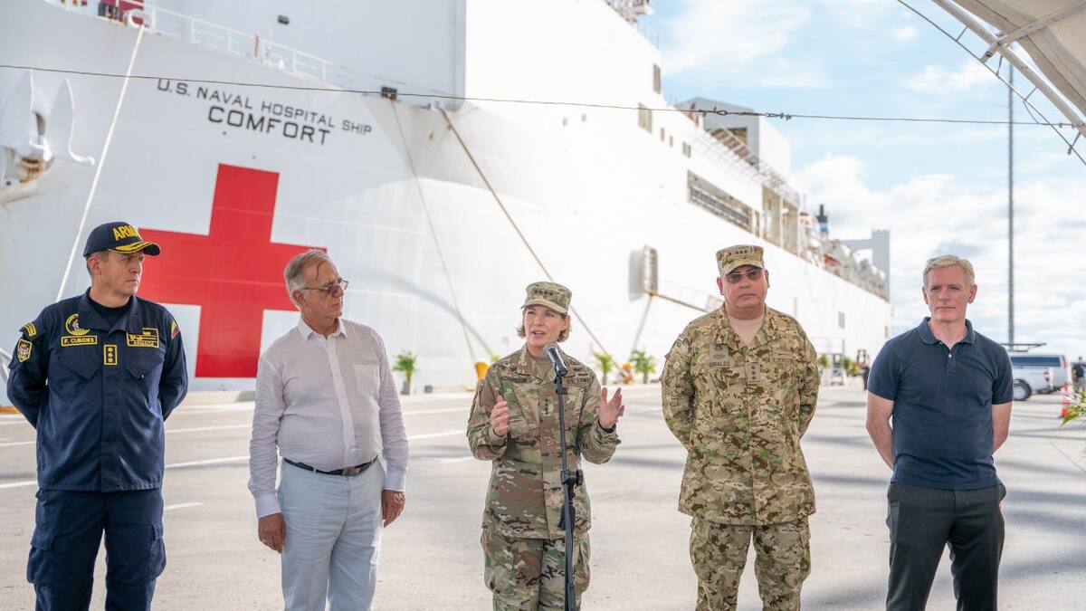 Este lunes festivo, la general Laura Richardson, comandante del Comando Sur de Estados Unidos, visitó junto al ministro de Defensa Iván Velásquez a la tripulación del el Buque Hospital de Cartagena. En su recorrido, la acompañó también el comandante de las Fuerzas Militares, el general Helder Giraldo, así lo informó la Embajada de Estados Unidos en Colombia.