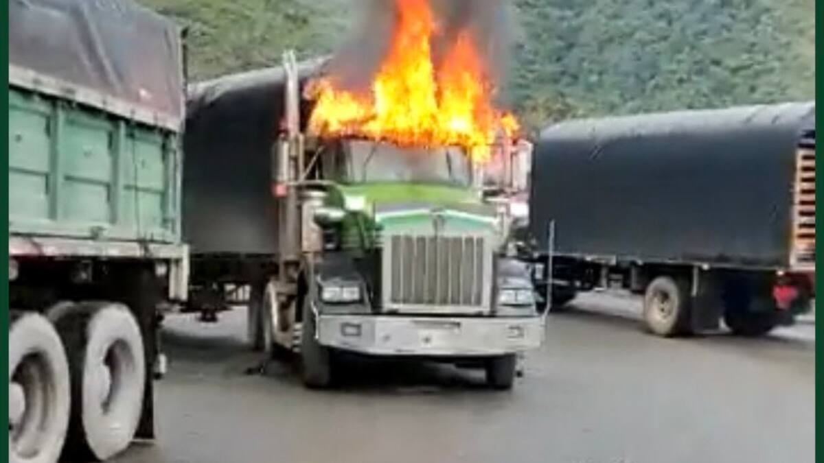 'Eran varios hombres armados, tenían armas cortas, pistolas, me apuntaron en la cabeza, me quitaron el celular, la billetera y uno sacó de un bolso un litro de gasolina y se lo regó a la cabina y la incendió', relató este martes a EFE Roberto Pinto, el segundo conductor que fue sometido por los hombres armados.
