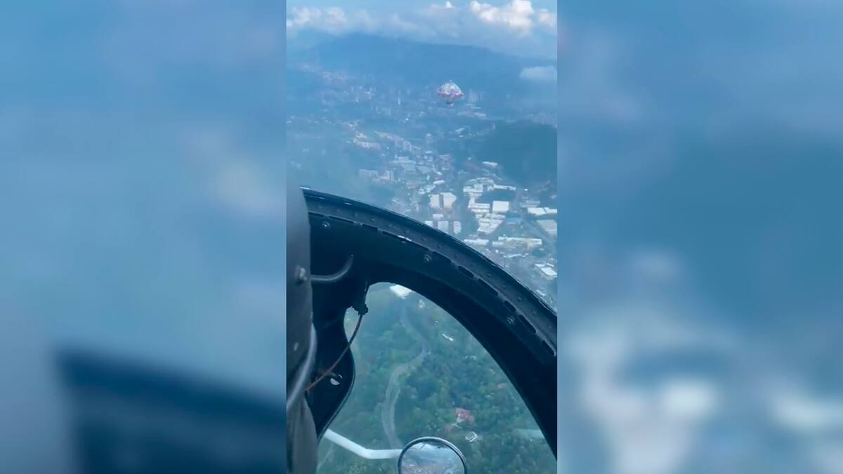 En un video divulgado en redes sociales, se puede observar cómo un globo aerostático pasa muy cerca de una aeronave que sobrevolaba el municipio de Caldas, Antioquia.