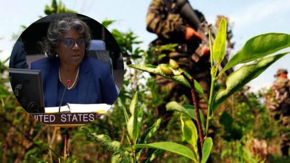 'La producción de drogas ilícitas sigue avivando la violencia en áreas afectadas por el conflicto. La Oficina de las Naciones Unidas contra la Droga y el Delito reportó niveles récord de cultivos de coca en 2021. Seamos claros, todos los actos de violencia, ya sean ataques contra la fuerza pública, comunidades indígenas o afrocolombianas, excombatientes, defensores de derechos humanos o ambientalistas, impiden el progreso y la paz', afirmó Thomas-Greenfield.
