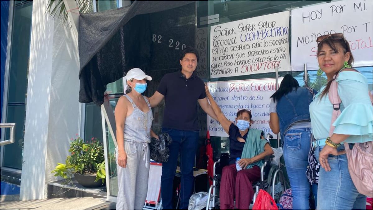 Una adulta mayor y la madre un niño con discapacidad levantan huelga de hambre que comenzaron hace 30 horas en las puertas de la EPS Salud Total, luego de la intervención Miguel Ángel Alzate, Personero Distrital.