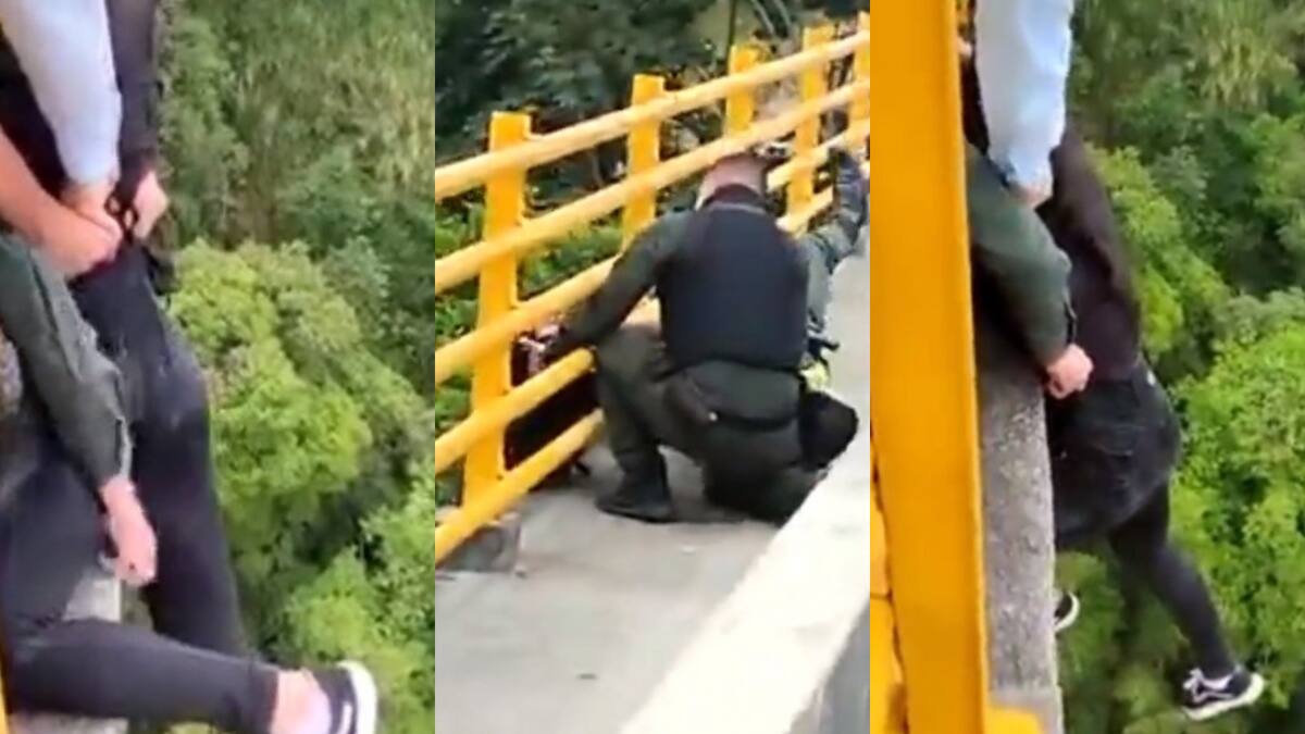 El caso quedó registrado a través de videos y por medio del apoyo de uniformados de la Policía se evitó que la joven cayera al vacío.