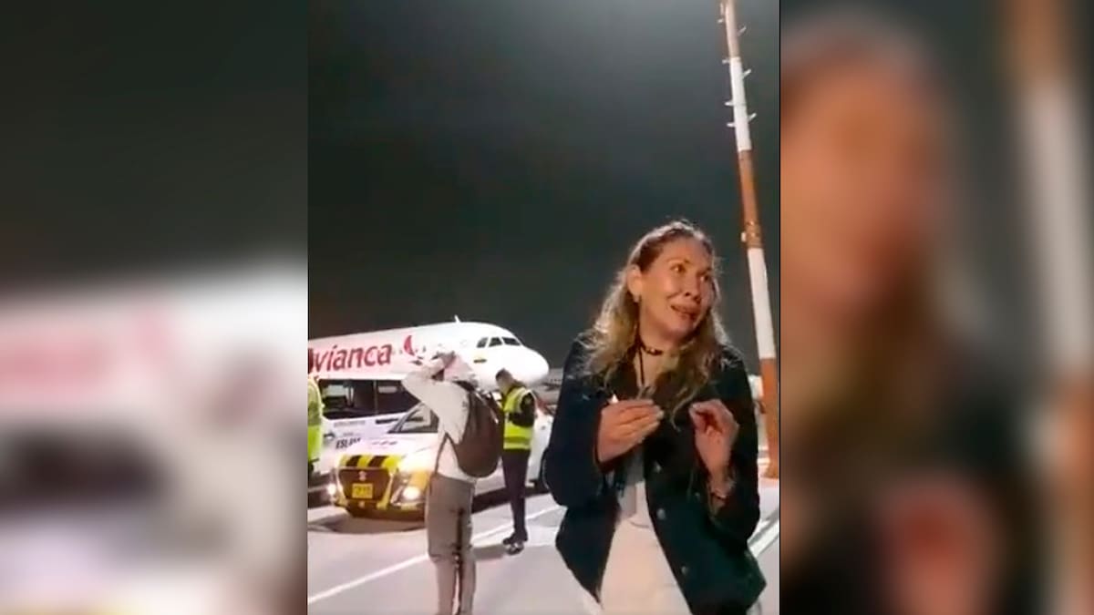 En las imágenes, que presuntamente fueron grabadas en al aeropuerto El Dorado, de Bogotá, se observa y escucha a la mujer, molesta, decir 'Mi amor, yo respeto a mi marido, que es militar; tú eres policía, tú eres nada. Mi marido sí, que es coronel, ¿tú eres qué?'.