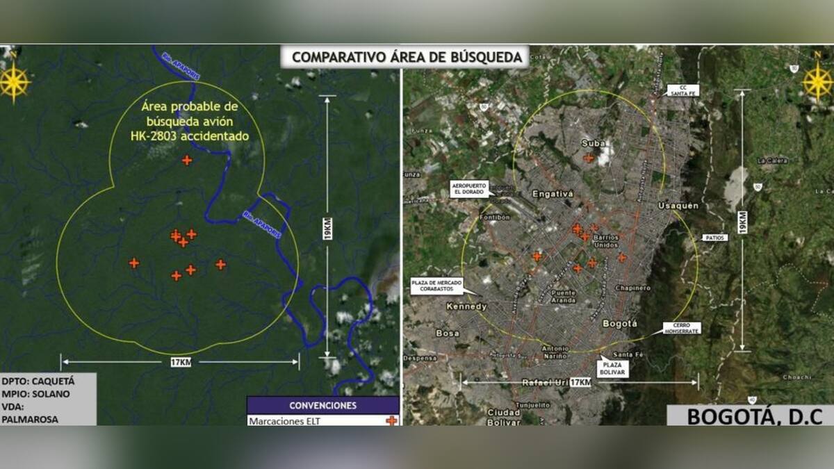 En medio del operativo de rescate de los menores que encuentran en la selva de Caquetá, este viernes 19 de mayo las Fuerzas Militares dieron a conocer un gráfico de la operación ‘Esperanza’ el cual revela que la zona de búsqueda corresponde al 80 % del tamaño de Bogotá.