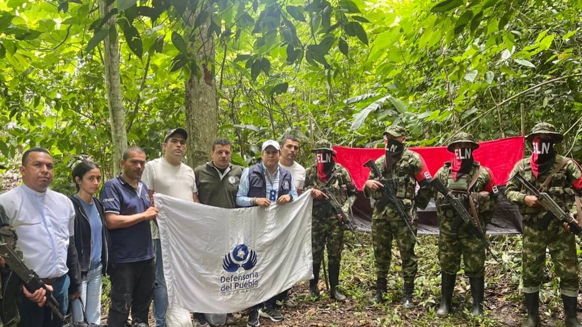 Este lunes 20 de junio de 2023 a través de una misión humanitaria de la Defensoría del Pueblo y la Iglesia Católica se dio la liberación de cinco funcionarios de la Alcaldía de Santa Rosa del Sur (Bolívar) que permanecían en poder del ELN desde hace 17 días.