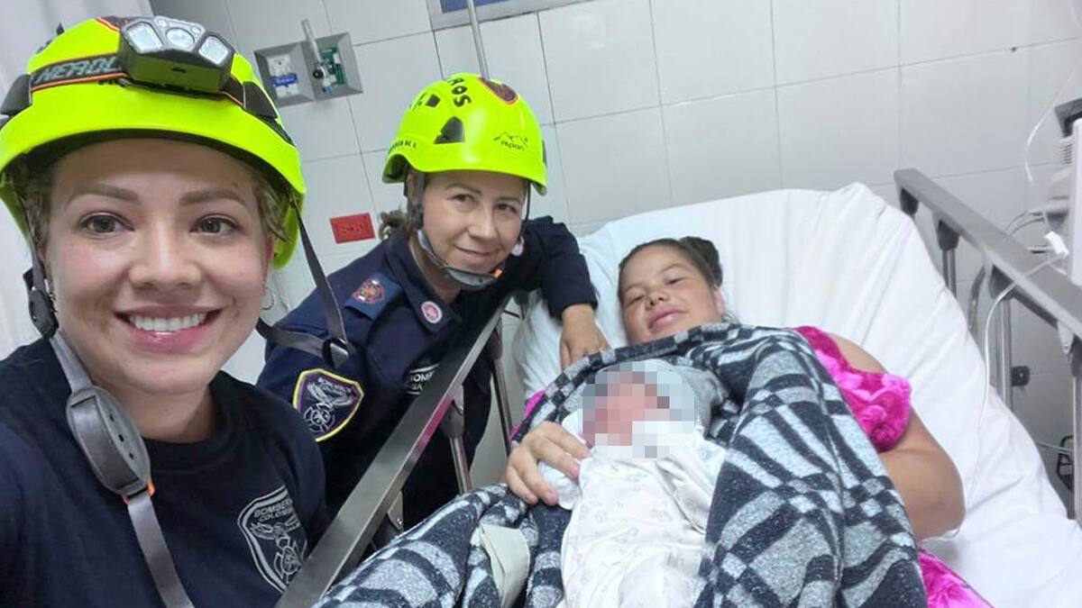 A través de redes sociales, miembros del Cuerpo de Bomberos compartieron la imagen de la madre y su bebé y entregaron un parte de tranquilidad a su familia y la comunidad, que había quedado a la expectativa por la emergencia.