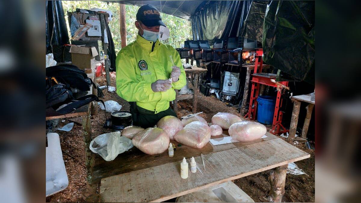 Los uniformados hallaron dos instalaciones donde se adelantaban las diferentes fases del procesamiento de pasta base de coca y la cristalización de clorhidrato de cocaína, así como su prensado y empaque.