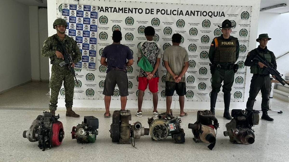 'La operación se desarrolló en el área general de Caucasia, en donde tropas del Batallón Fluvial de Infantería de Marina No.17 y efectivos de la Policía Nacional lograron la detención de estos tres hombres, quienes se encontraban realizando la extracción ilícita de yacimientos mineros y otros materiales', agregó la Armada en el comunicado.