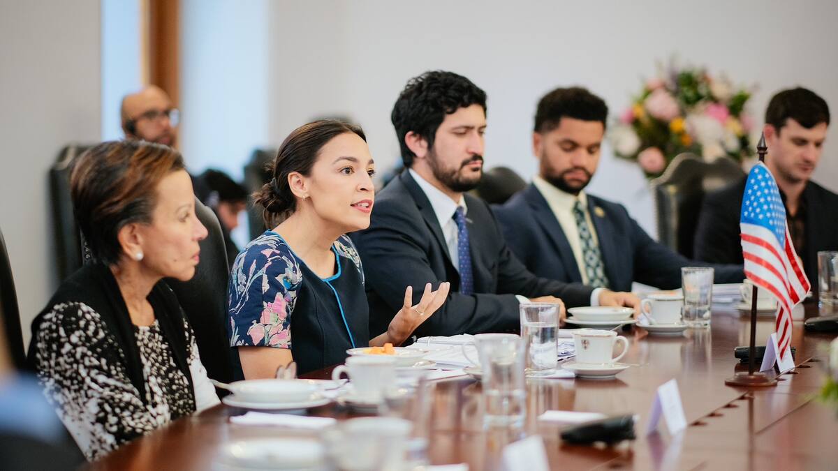 La delegación del Partido Demócrata de la Cámara de Representantes está compuesta por Alexandria Ocasio-Cortez, Nydia Velázquez, Joaquín Castro, Greg Casar, Maxwell Frost y Misty Rebik, portavoz de la oficina del senador Bernie Sanders. Los cinco representantes y la vocera vienen de una visita a Chile en la que se reunieron con el presidente Gabiel Boric.