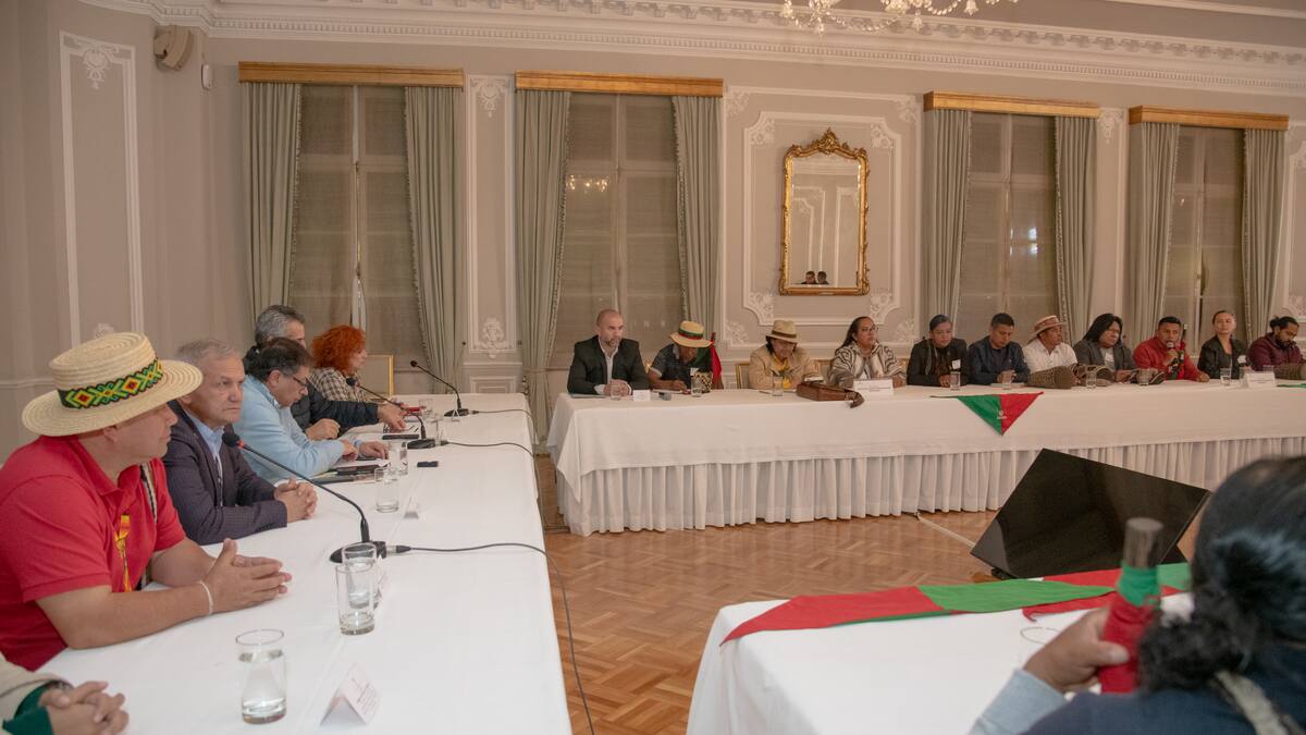 El jefe de Estado abordó dos temas fundamentales con los delegados de la ONIC y el CRIC: 'La necesidad de la unidad de las comunidades indígenas, para lo cual se van a convocar reuniones preparatorias de todas las organizaciones para un gran congreso indígena. Y se hizo un llamado a buscar la paz total, para lo cual las expresiones deben ser pacíficas', según reportó el Gobierno.